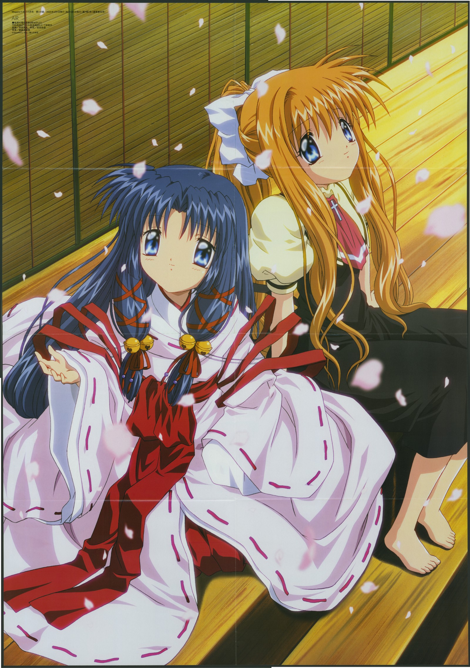 00s2girlsbarefootblonde haircreasehakamahakama skirtjapanese clothesmultiple girlsred hakamaskirt