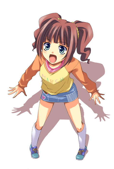 hama (22ji kara 24ji), original, bad id, bad pixiv id, 1girl, breasts, brown eyes, brown hair, censored, clenched hands, cowboy shot, cropped legs, female focus, food, fruit, hip bones, long hair, mandarin orange, navel, nipples, novelty censor, nude, orange (fruit), purple eyes, small breasts, solo
