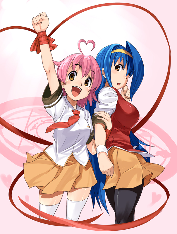 ebisu (amagi seitetsujo), ebisu (artist), gurren, lagann, simon (ttgl), yoko littner, tengen toppa gurren lagann, 00s, 1boy, 1girl, bikini, bikini top only, blue hair, cloud, day, elbow gloves, gloves, goggles, goggles on head, long hair, ponytail, red hair, scarf, short hair, short shorts, shorts, sky, swimsuit, thighhighs, yellow eyes