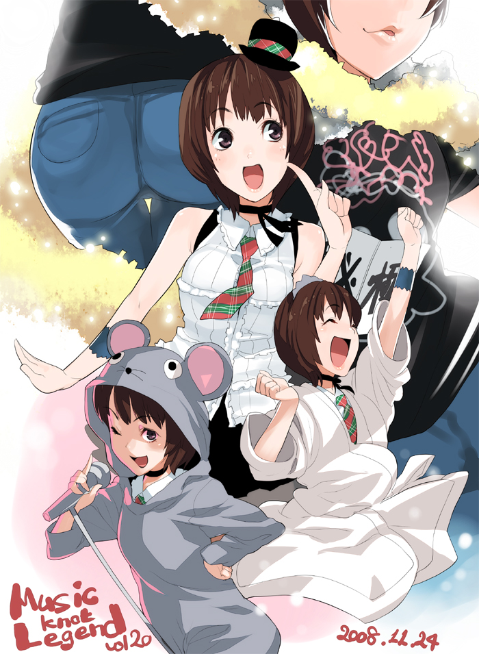 00s1girlanimal costumeanimificationhand on own hiphappyhathip focusmicrophonemini hatmini top hatmouse costumenecktietop hat