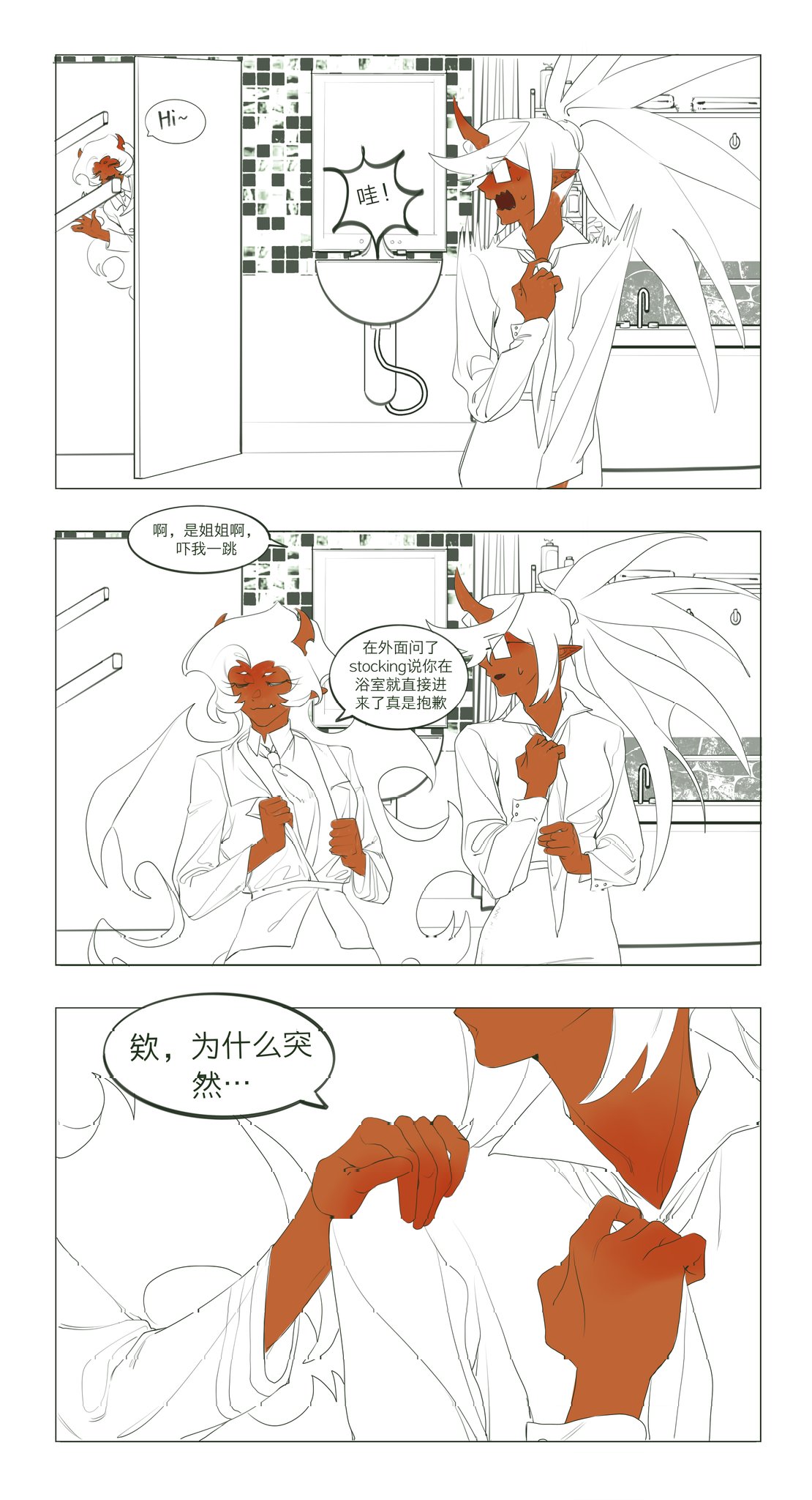 tomimon, hina (blue archive), hina (pajamas) (blue archive), blue archive, commentary request, highres, translation request, 1girl, ahoge, bags under eyes, demon girl, demon horns, empty eyes, hair between eyes, horns, jitome, long hair, no mouth, official alternate costume, pajamas, polka dot, purple eyes, simple background, solo, white background