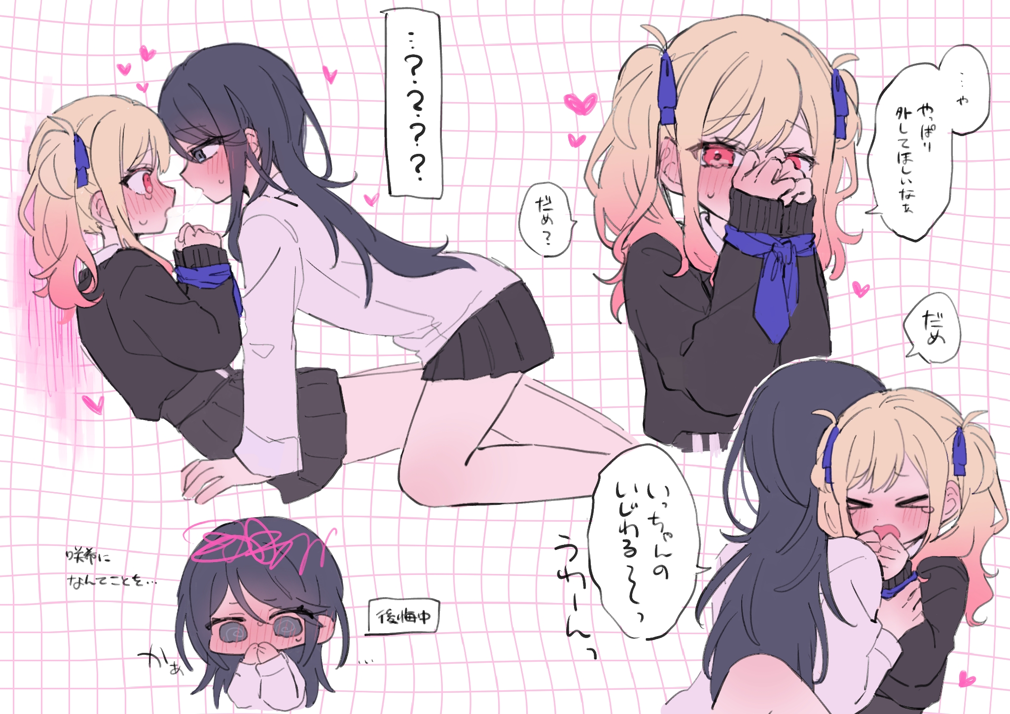 hikabe sakuho, original, untied, braid, brown eyes, brown hair, hair down, long hair, midriff, pleated skirt, school uniform, serafuku, skirt, smile, solo, twin braids