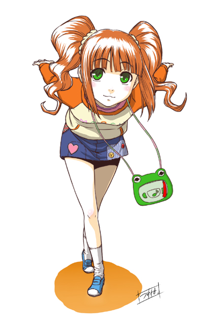 :300s1girlbagbent overblushbrown hairfemale focuslegspencil skirtraglan sleevesskirtsockssolotwintails