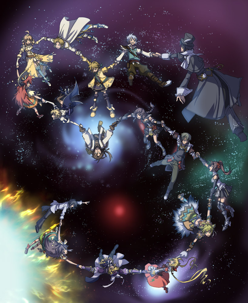 6+boys6+girlsblack hairflyingfull bodyholding handslong hairlooking at viewermultiple boysmultiple girlsoutdoorsparodyshort hairspacevery long hair