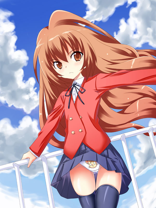 00s1girlbrown eyesbrown hairfemale focuslong hairpantiesprint pantiesrooftopschool uniformskirtsolothighhighsunderwearwindwind liftzettai ryouiki