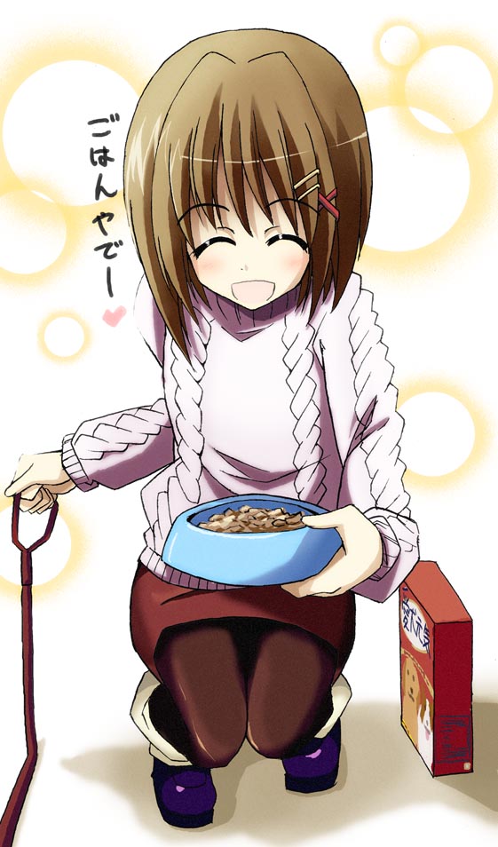 ooyari ashito, yazuki miyu, period, translation request, 1girl, ahoge, black thighhighs, blush, bow, brown hair, chocolate, coat, earmuffs, english text, female focus, heart, holding, hood, hood down, leaning back, light smile, long sleeves, orange eyes, oversized object, pleated skirt, short hair, sitting, skirt, smile, solo, stuffed animal, stuffed rabbit, stuffed toy, thighhighs, valentine, winter clothes, zettai ryouiki
