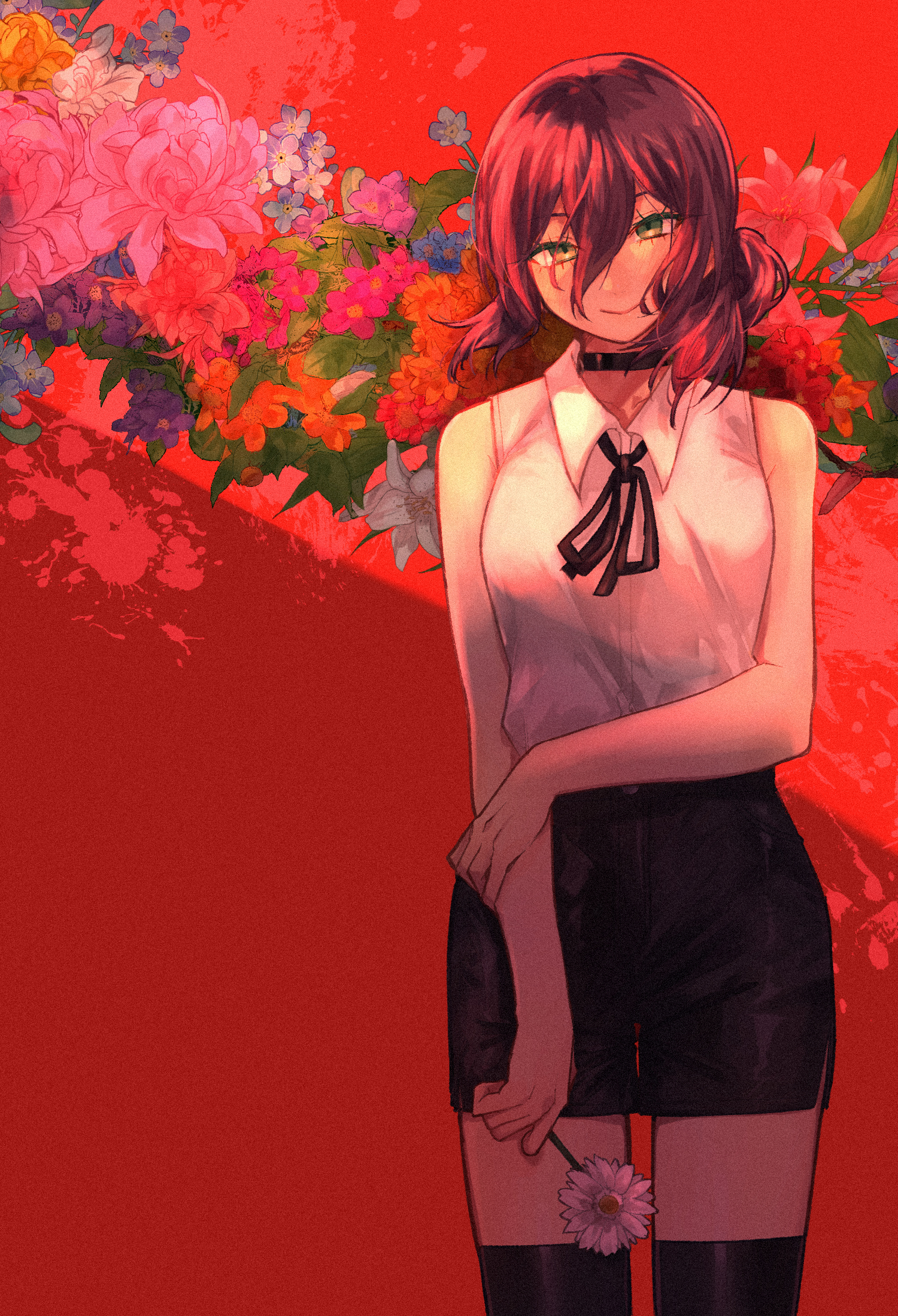 amane misa, death note, absurdres, commentary, english commentary, highres, 1girl, blonde hair, blue eyes, candy, chocolate, chocolate bar, cross, cross necklace, food, holding, holding chocolate, holding food, jewelry, midriff, necklace, shorts, simple background, solo, v, vitagazer, white background