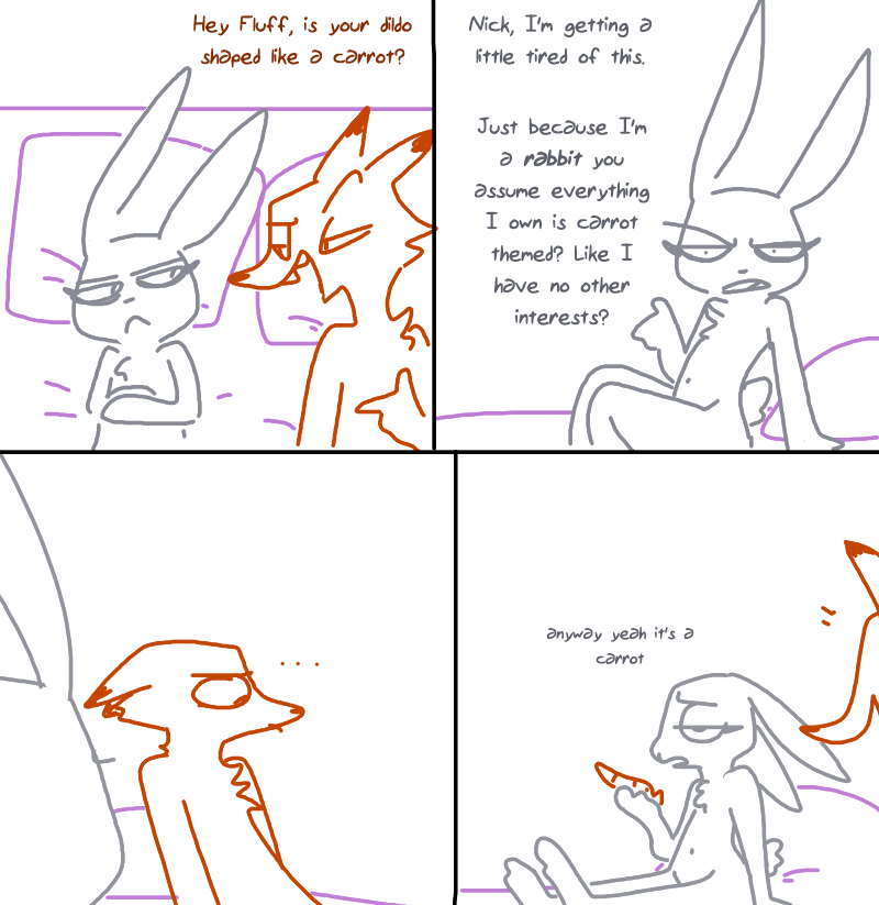 anthrobedcaninecarrotdialoguedildoFlag for Deletionfoodfoxlagomorphmammalnudeorange and whiterabbitsex toytuftvegetable