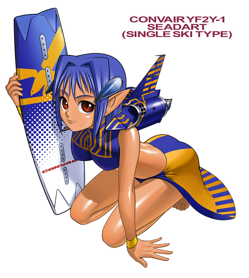 1girlaircraftairplanearm supportblue haircharacter namef-7female focuskickboardmecha musumemilitarypersonificationpointy earsred eyessea dartskirtsolosurfboard