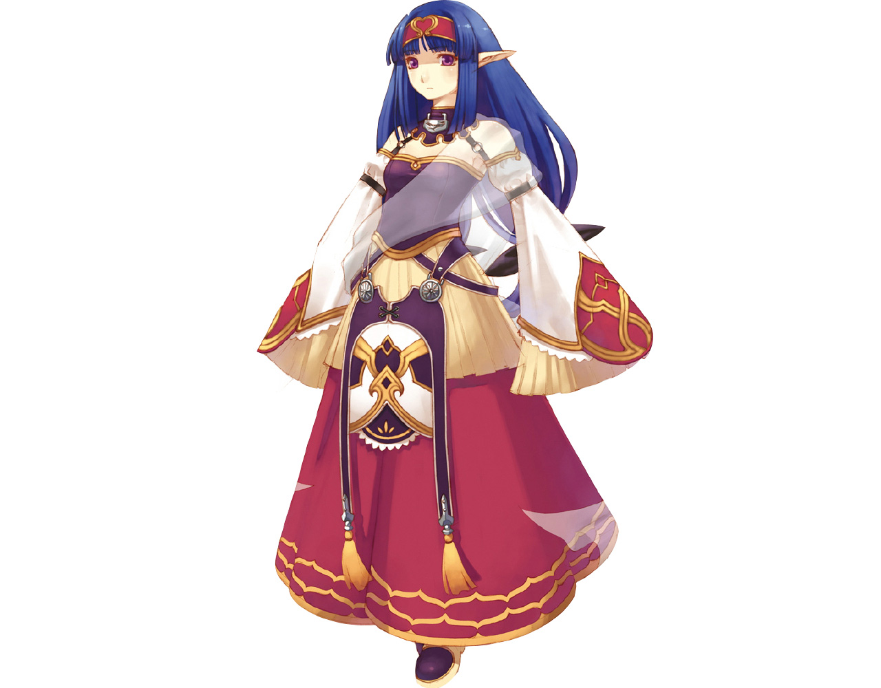 tenmaso, 1girl, :d, bare shoulders, blonde hair, blush, bow, brown hair, detached sleeves, dress, female focus, flat chest, hair ribbon, long hair, looking at viewer, off shoulder, open mouth, ponytail, purple eyes, red eyes, ribbon, sash, simple background, skirt, sleeves rolled up, smile, solo, standing, strapless, strapless dress