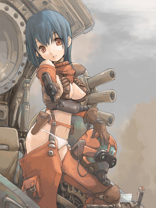 1girlbreastsfemale focusgenderswapgunmechaoldschoolpantiesretro artstylerobotsolounderwearweapon