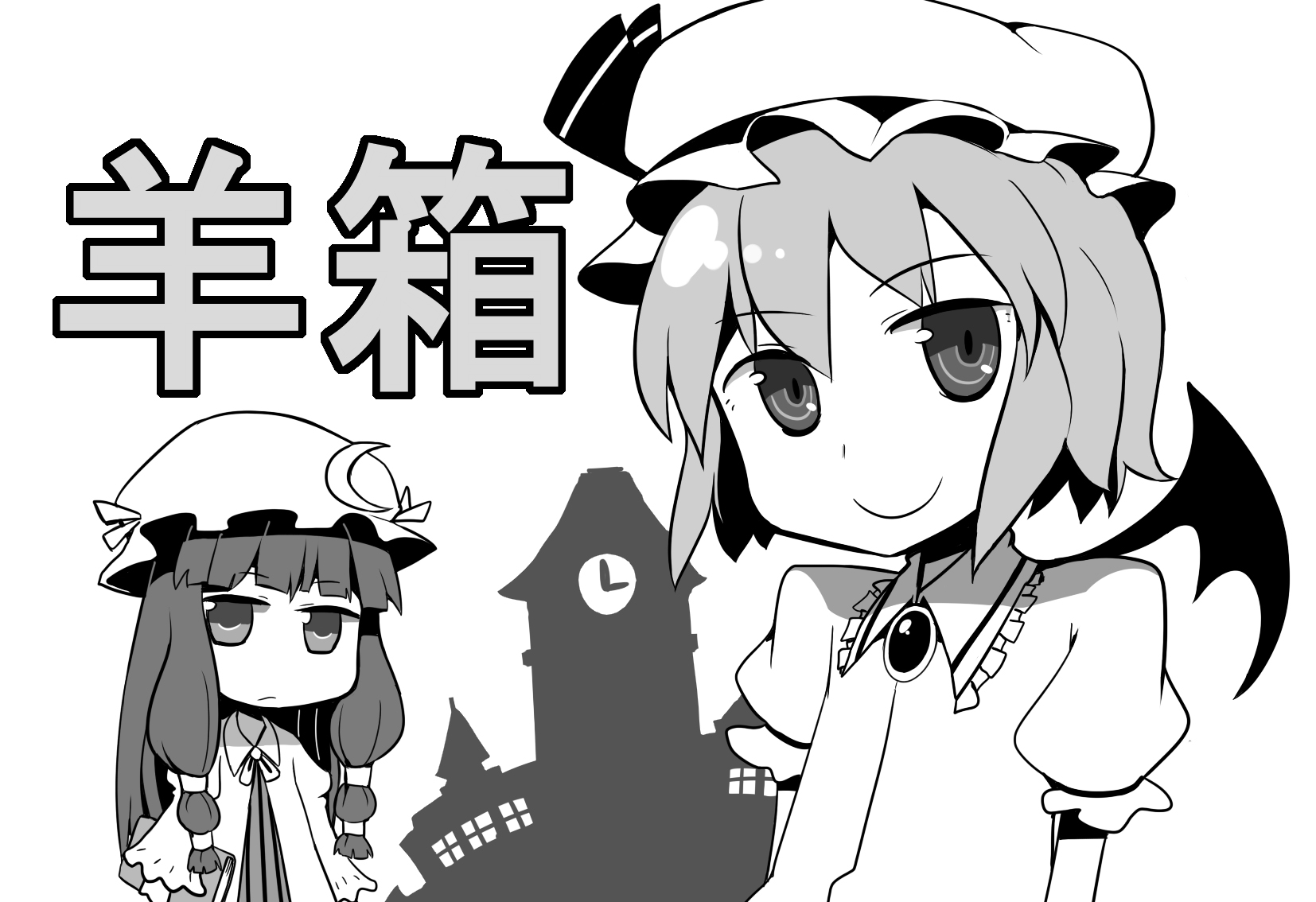 1boy2girlsbookchibiclockclock towercrescent hat ornamentfemale focusgreyscalehathat ornamentlong hairmonochromemultiple girlsno nosesmiletowerwings