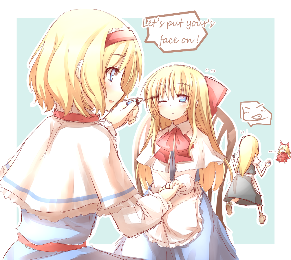 hyouzen katsura, yuno (hidamari sketch), hidamari sketch, translation request, 00s, 1girl, 2008, blonde hair, dress, female focus, hair ornament, hairclip, polka dot, ribbon, salute, school uniform, serafuku, short hair, sitting, sketch, smile, socks, solo, yamabuki high school uniform, yellow eyes