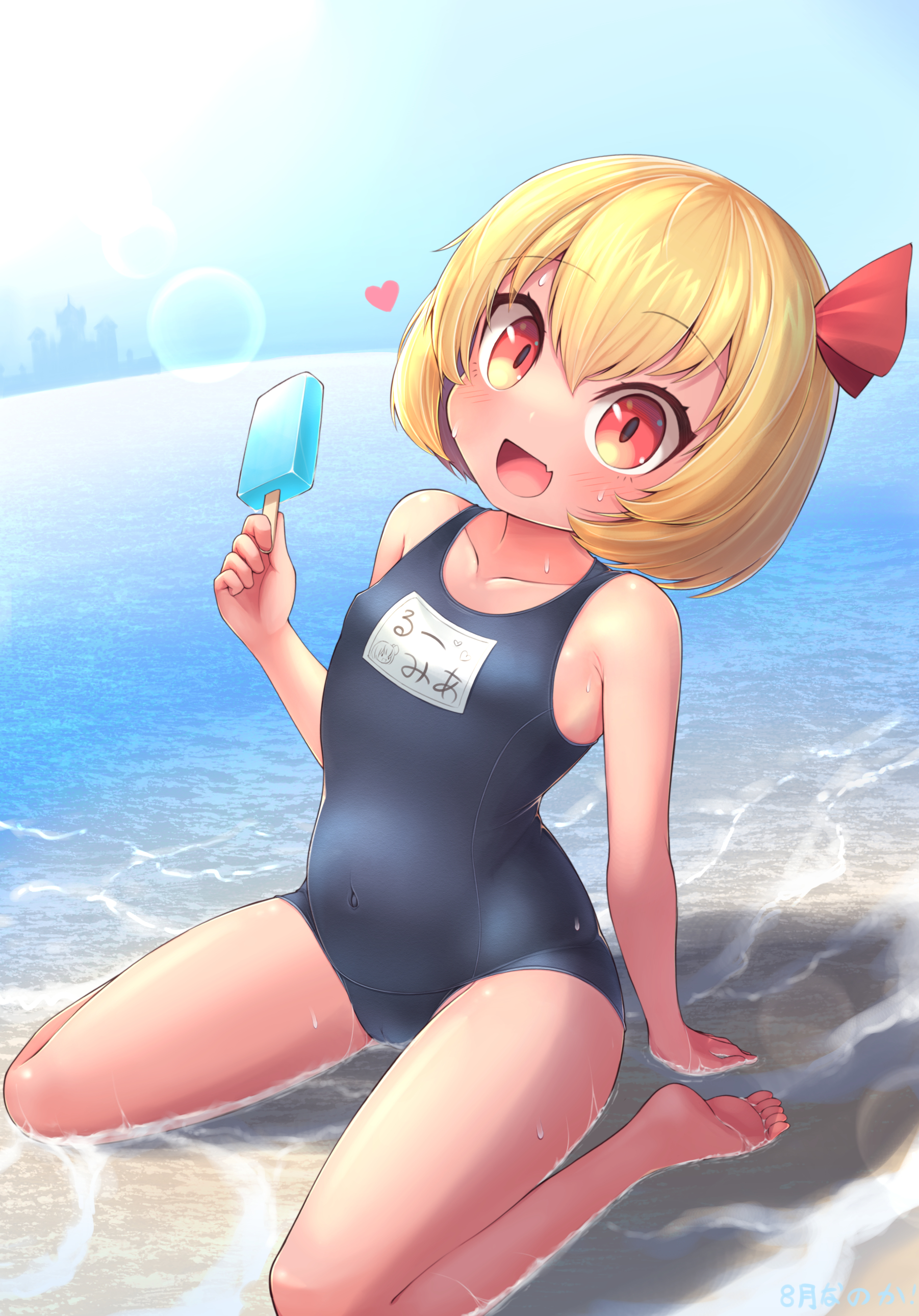 :d1girlalternate costumebarefootbeachblack one-piece swimsuitblonde hairblue skyblushbowbreastsclear skycovered naveldayfangfoodfull bodyhair bowheartholdingholding foodholding popsiclein-universe locationlooking at viewermisty lakeone-piece swimsuitopen mouthorange eyesoutdoorspopsiclered bowscarlet devil mansionseizashort hairsittingskin fangskysmall breastssmilesolosunswimsuitwaterwaves