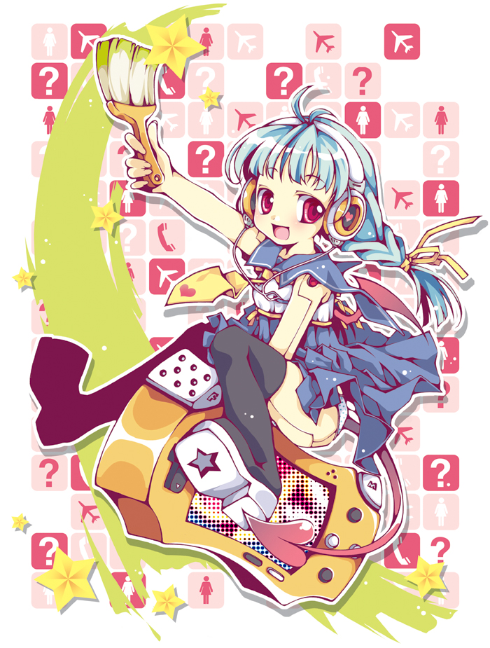 blue hairbraiddresslong hairpaintbrushpantiespantyshotred eyessolotailthighhighstrim brushunderwear