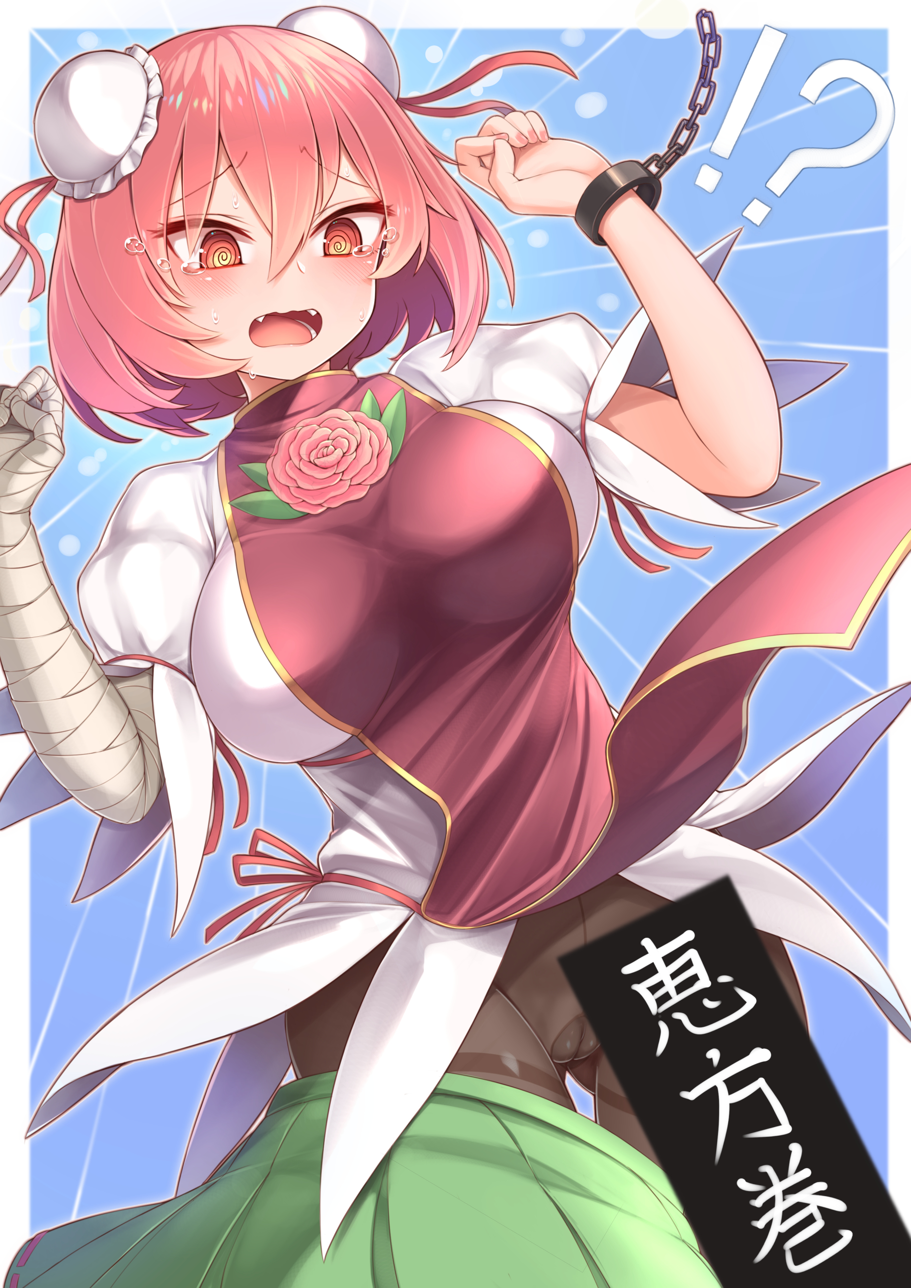 sino (sino hb), sengoku otome, absurdres, highres, 1girl, alcohol, belt, breasts, cleavage, coat, cup, dress, elbow gloves, embarrassed, falling petals, from side, fusuma, gear hair ornament, gloves, hair tubes, half-closed eyes, high ponytail, holding, holding cup, indoors, long hair, looking at viewer, mechanical boots, navel, open mouth, orange hair, outstretched legs, petals, pink coat, pink dress, ponytail, raised inner eyebrows, red eyes, sakazuki, sake, short shorts, shorts, shoulder tattoo, sitting, sleeveless, sleeveless dress, sliding doors, tachibana dousetsu (sengoku otome), tatami, tattoo, thighhighs, white thighhighs