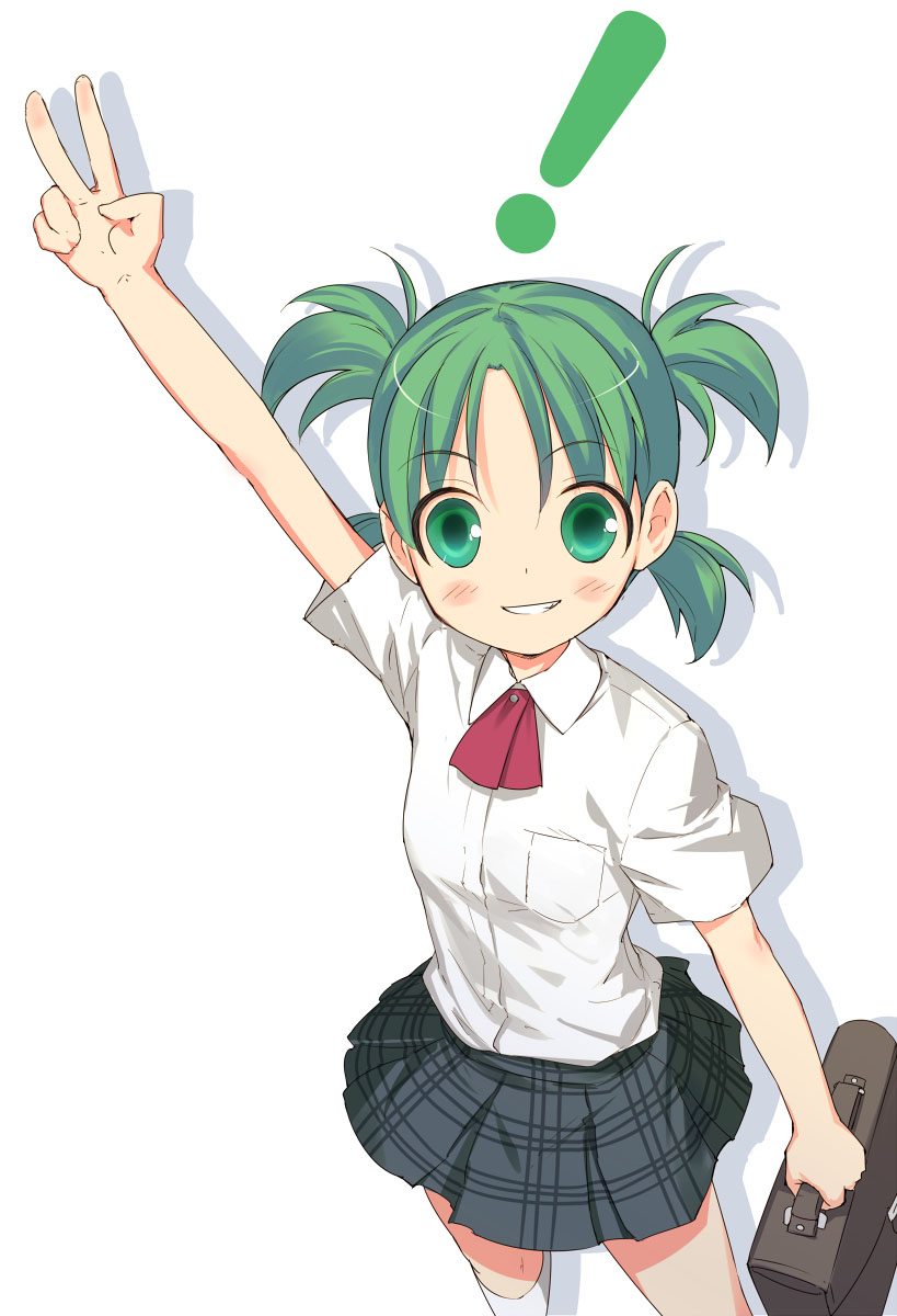1boy1girlaged upbagblushchildfemale focusgreen eyesgreen hairgrinmatching hair/eyesquad tailssatchelschool bagschool uniformskirtsmilesolov