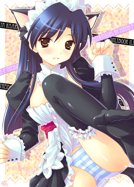 rai iceblast, suzumiya haruhi, suzumiya haruhi no yuuutsu, highres, 1girl, bikini, bikini top only, blush, breasts, brown hair, cleavage, cleavage cutout, closed mouth, clothes lift, clothing cutout, collarbone, front-tie bikini top, front-tie top, hair between eyes, hair ribbon, headband, medium breasts, midriff, navel, open mouth, red eyes, ribbon, shirt, shirt lift, short hair, short shorts, short sleeves, shorts, sweat, swimsuit, thighs, torn clothes, torn shirt