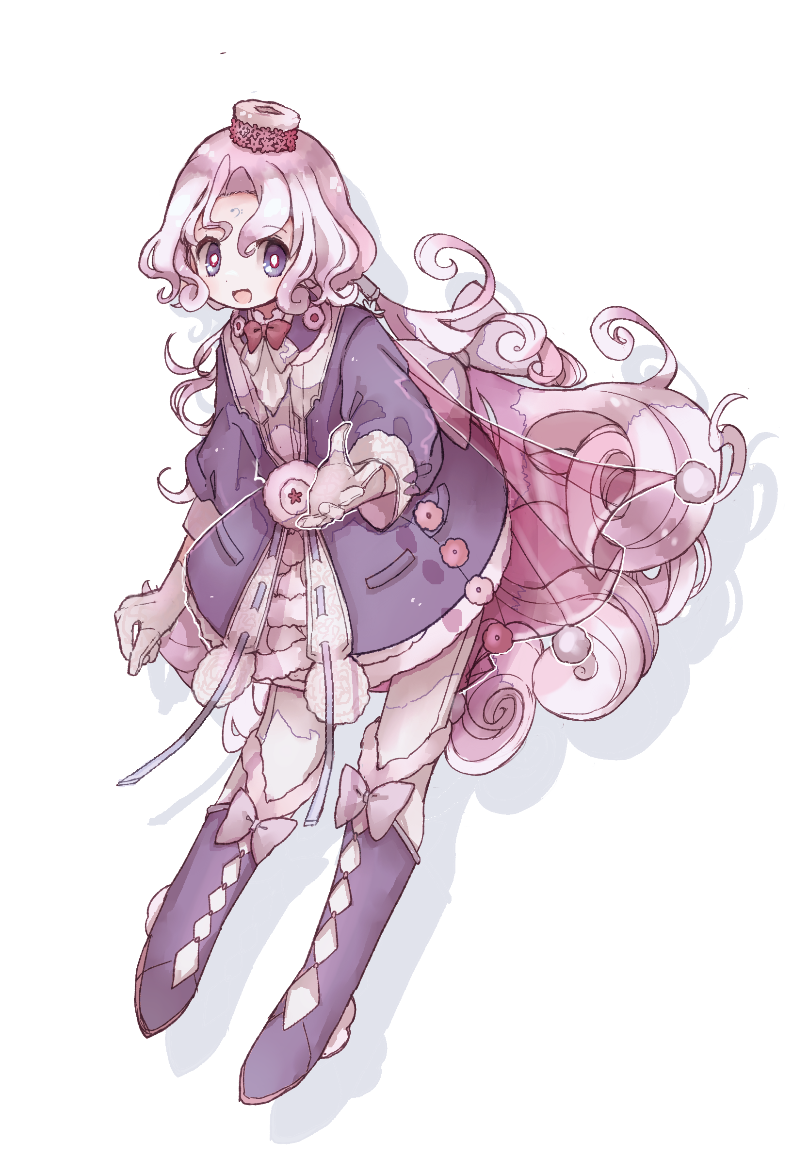 1girlcurly hairdressforest musician cranberry gaiden: magical girl raising project unripe duetfrilled dressfrillsfur hatgloveshatlong hairmagical girlmiiya octavepurple eyesreachingsmilethighhighswhite hair
