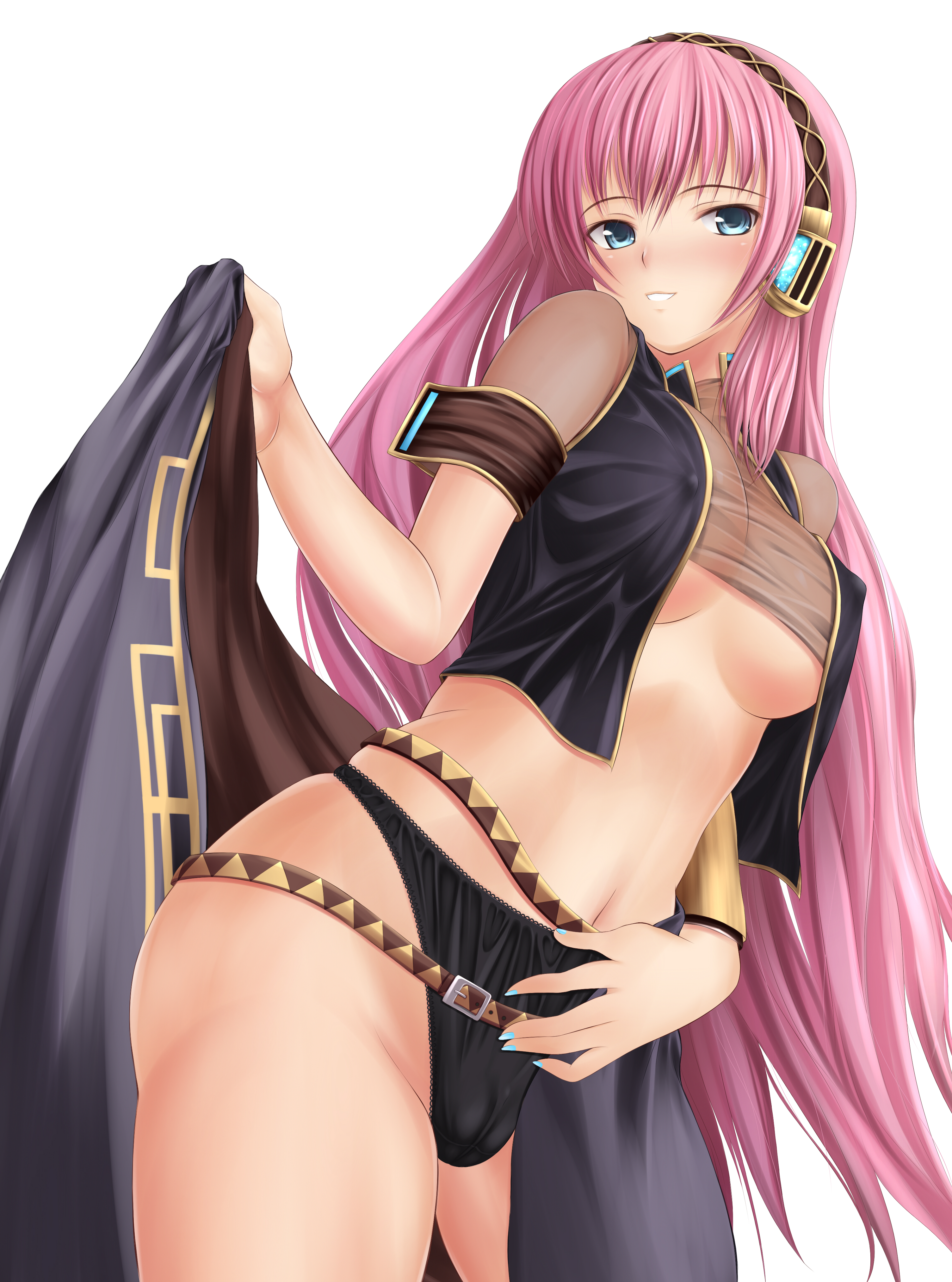 1girlblack pantiesblue nailsblushbreastscameltoefat monsfemale focushairbandlong hairnail polishpantiespink hairsolostandingunderboobunderwear