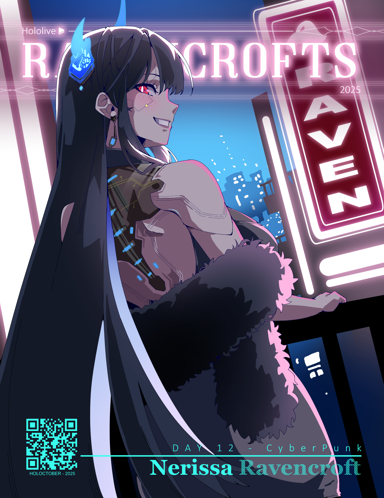 1girlandroidartificial eyeasymmetrical hornsblack hairblue haircityscapecolored inner haircyberpunkdemon hornshornsjointslong hairmechabaremechanical armsmetal skinmulticolored hairprosthesisred eyesscience fictionsmiletwo-tone hairuneven hornsvery long hairvirtual youtuber