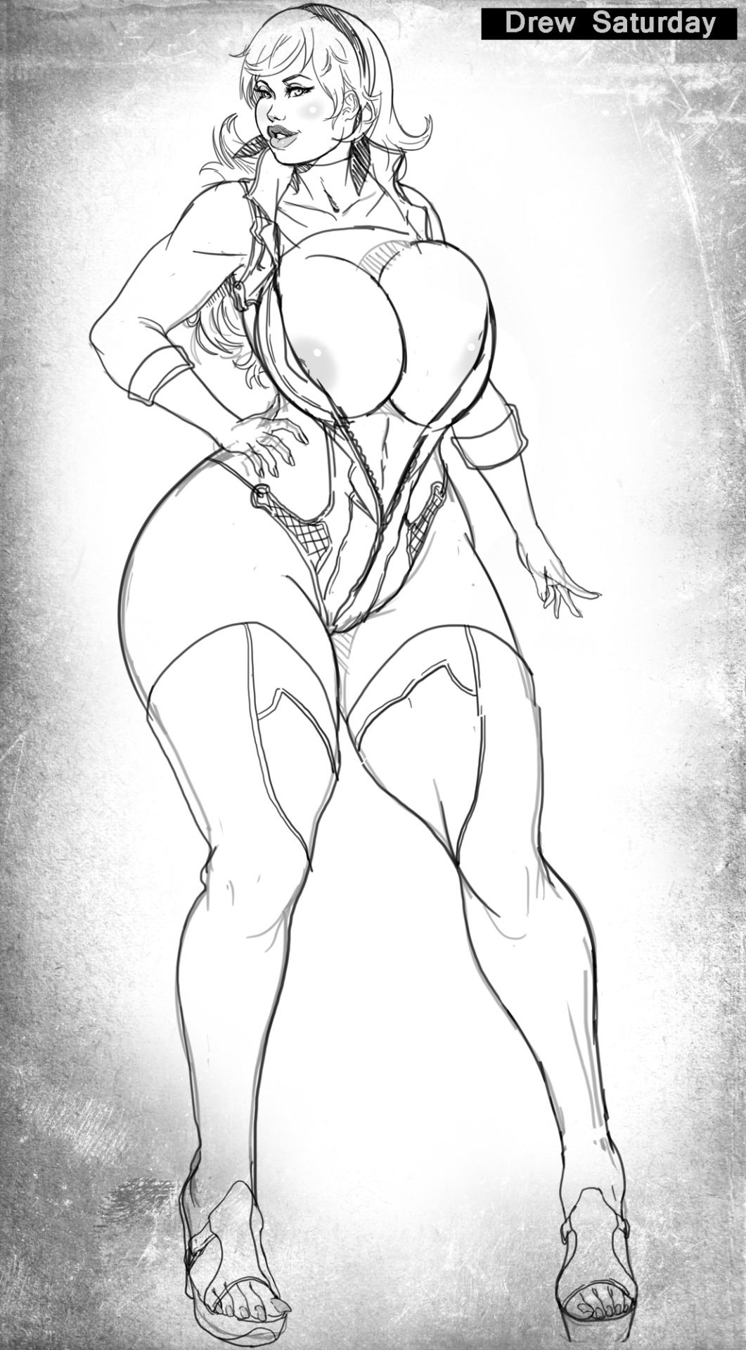 gooseworx, tagme, 1girl, anonymus69034, breasts, cleavage, colored skin, dancing, hair over one eye, multicolored eyes, no feet, pink hair, skirt, supernova (star), supernova shakedown, thighhighs, yellow skin