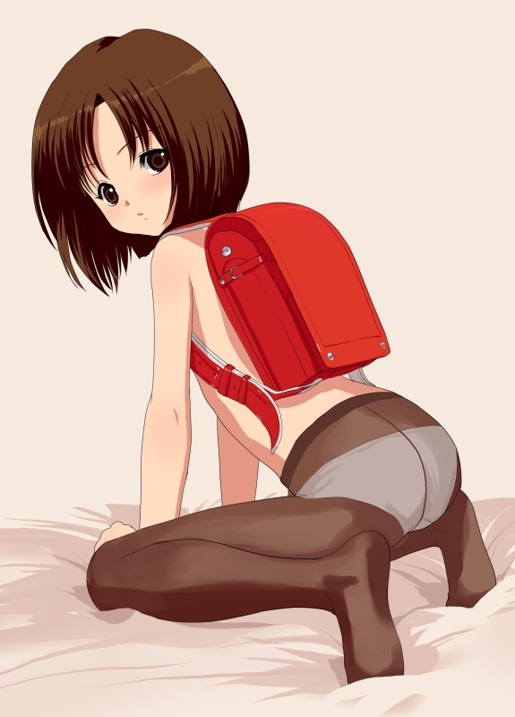 kasuga ayumu, azumanga daiou, tagme, alley, collar, covering privates, cuffs, nude, nude cover, pedocat, photo background, public indecency, shoes, socks, stairs, standing, subway