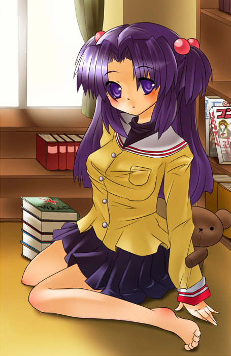 toudori, takara miyuki, lucky star, translated, 00s, 1girl, breasts, censored, censored nipples, cleavage, convenient censoring, female focus, glasses, nude, pink hair, purple eyes, solo