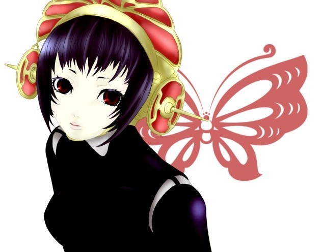 toast13, hakurei reimu, touhou, absurdres, commentary, highres, 1girl, adapted costume, alternate color, ascot, black boots, black hair, black skirt, blue bow, blue eyes, boots, bow, closed mouth, detached sleeves, frilled bow, frilled hair tubes, frills, hair bow, hair tubes, long hair, looking at viewer, purple nails, ribbon-trimmed sleeves, ribbon trim, skirt, solo, yellow ascot, yin yang, yin yang print