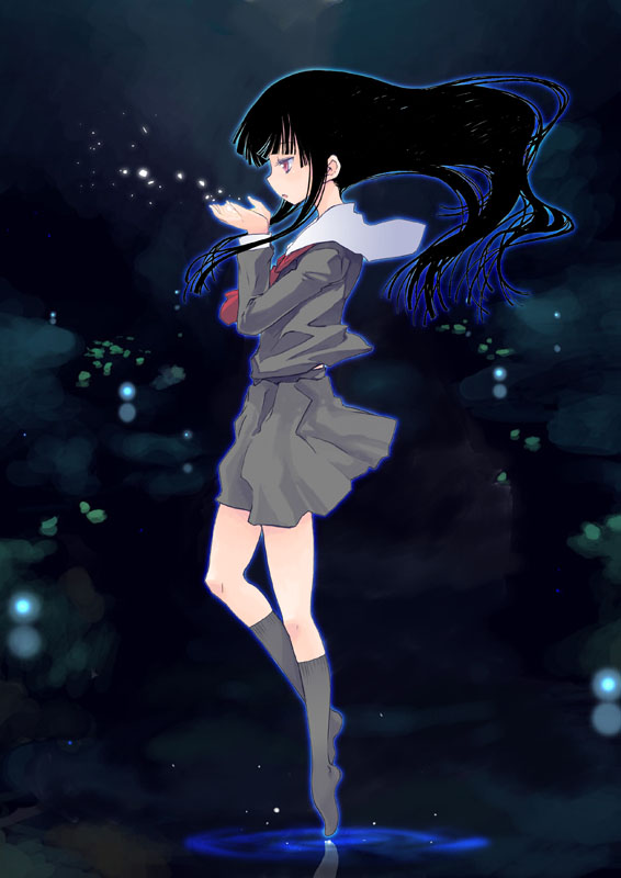 00s1girlblack hairblack serafukublunt bangsfemale focushime cutlong hairpink eyesprofileschool uniformserafukuskirtsockssolo