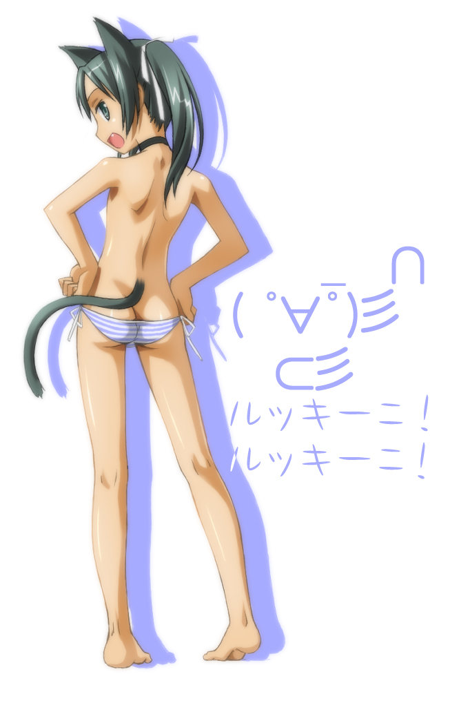 00s1girlanimal earsassbackbarefootfangfeetfemale focusfull bodygreen hairhands on own hipslooking backlowleglowleg pantiesoppai oppaipantiesshiny skinside-tie pantiessideways mouthsimple backgroundsmilesolostandingstriped clothesstriped pantiestailtopless femaleunderwearunderwear onlywhite background