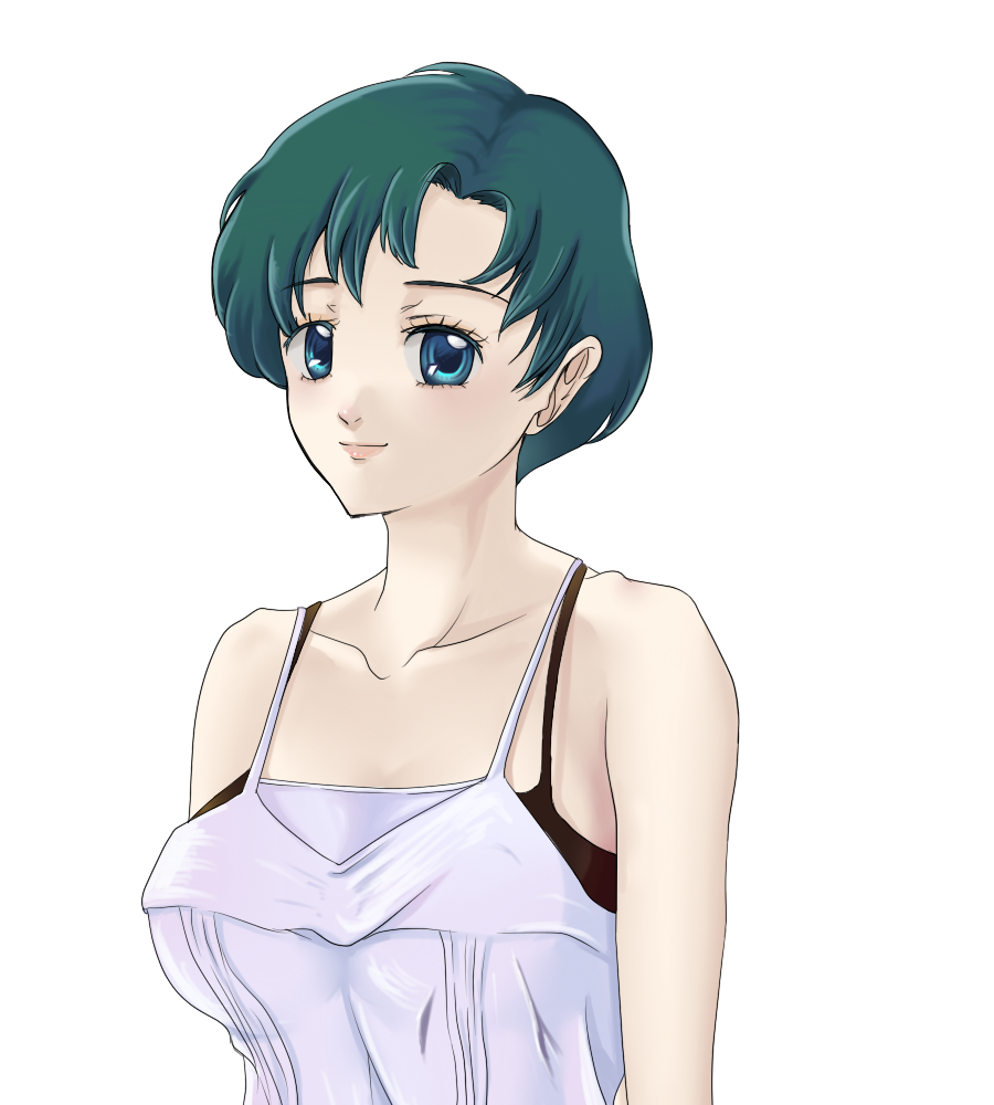 honjo mikaze, stratos 4, derivative work, highres, vector trace, 00s, bikini, blue eyes, green hair, lying, side-tie bikini bottom, solo, swimsuit, white bikini