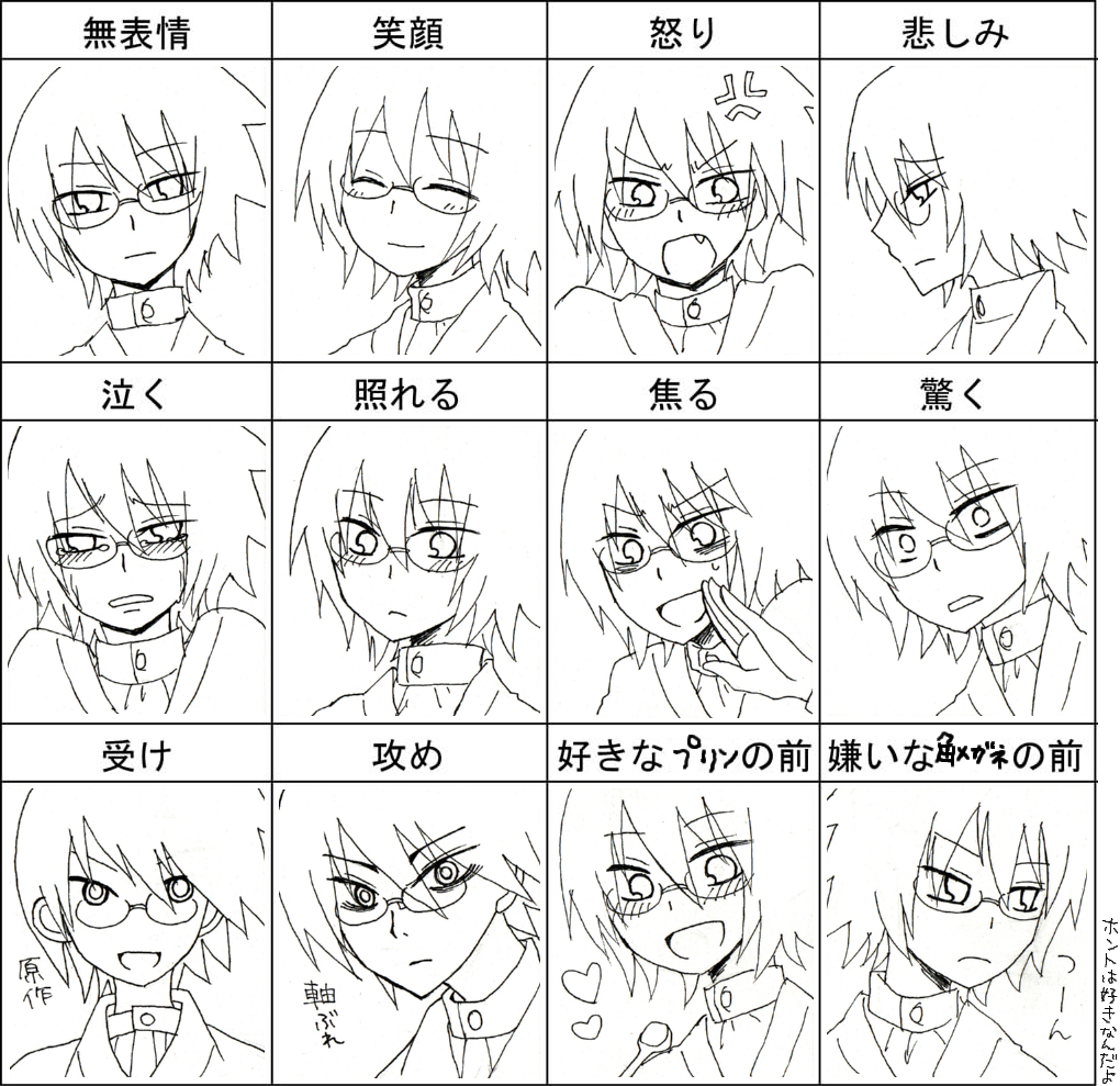 00s1boyblushchartglassesgreyscaleheartmale focusmonochromemultiple expressionsmultiple viewsshort hair