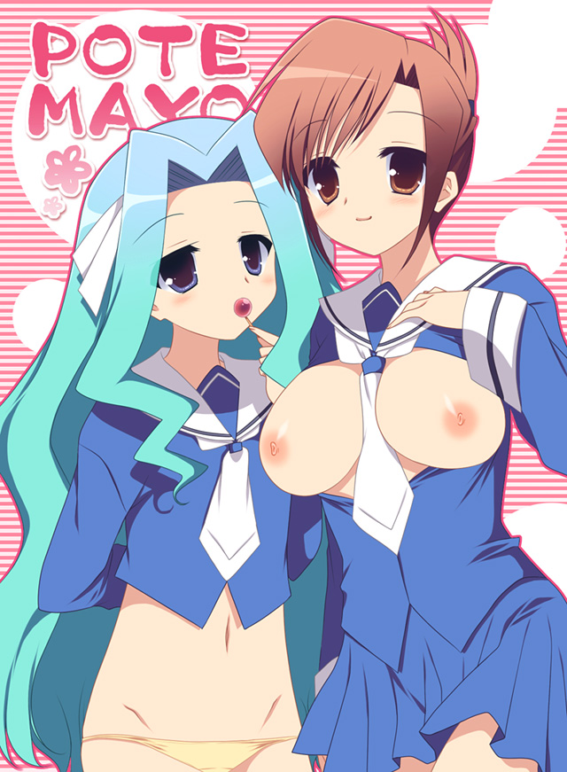 00s2girlsaqua hairblue eyesblushbreastsbrown eyesbrown haircandyfoodframed breastslarge breastslollipoplong hairlowlegmultiple girlsnavelnecktienipplesno braopen clothesopen shirtpantiesschool uniformshirtshort hairunderwearvery long hair