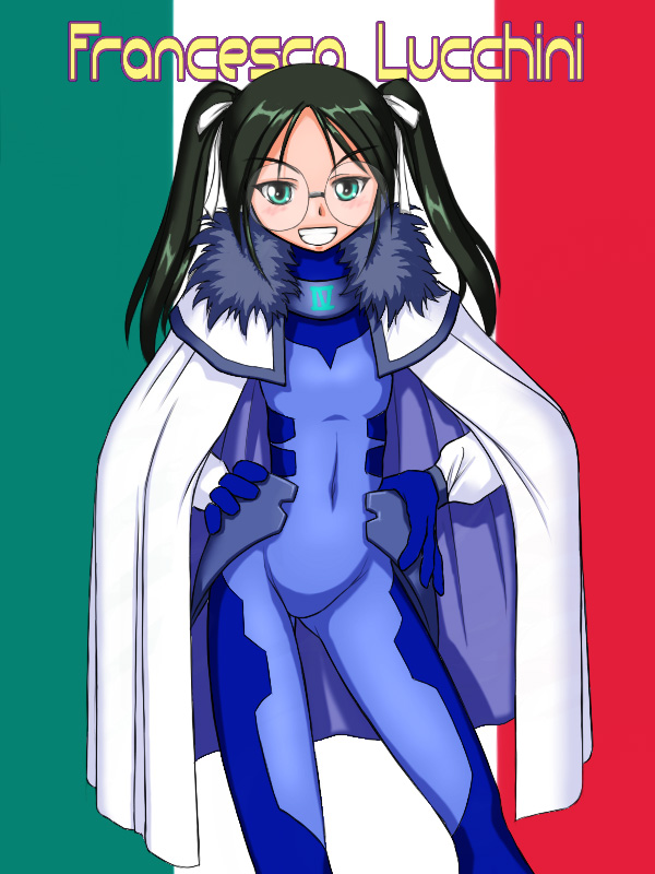 1girlbodysuitcapechiwa saitocosplayfemale focusglassesgreen eyesgreen hairmatching hair/eyesquattro (cosplay)quattro (nanoha) (cosplay)solotight clothesvoice actor connection