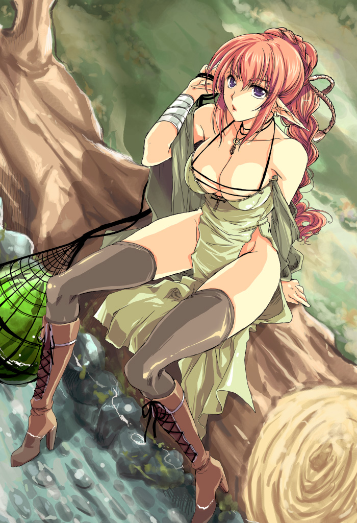 kazama mana, nanase ren, yakin byoutou, breast hold, 00s, 2girls, breasts, from behind, hug, hug from behind, long hair, midriff, multiple girls, navel, nipples, nude, nurse, text focus, very long hair, watermark, yuri