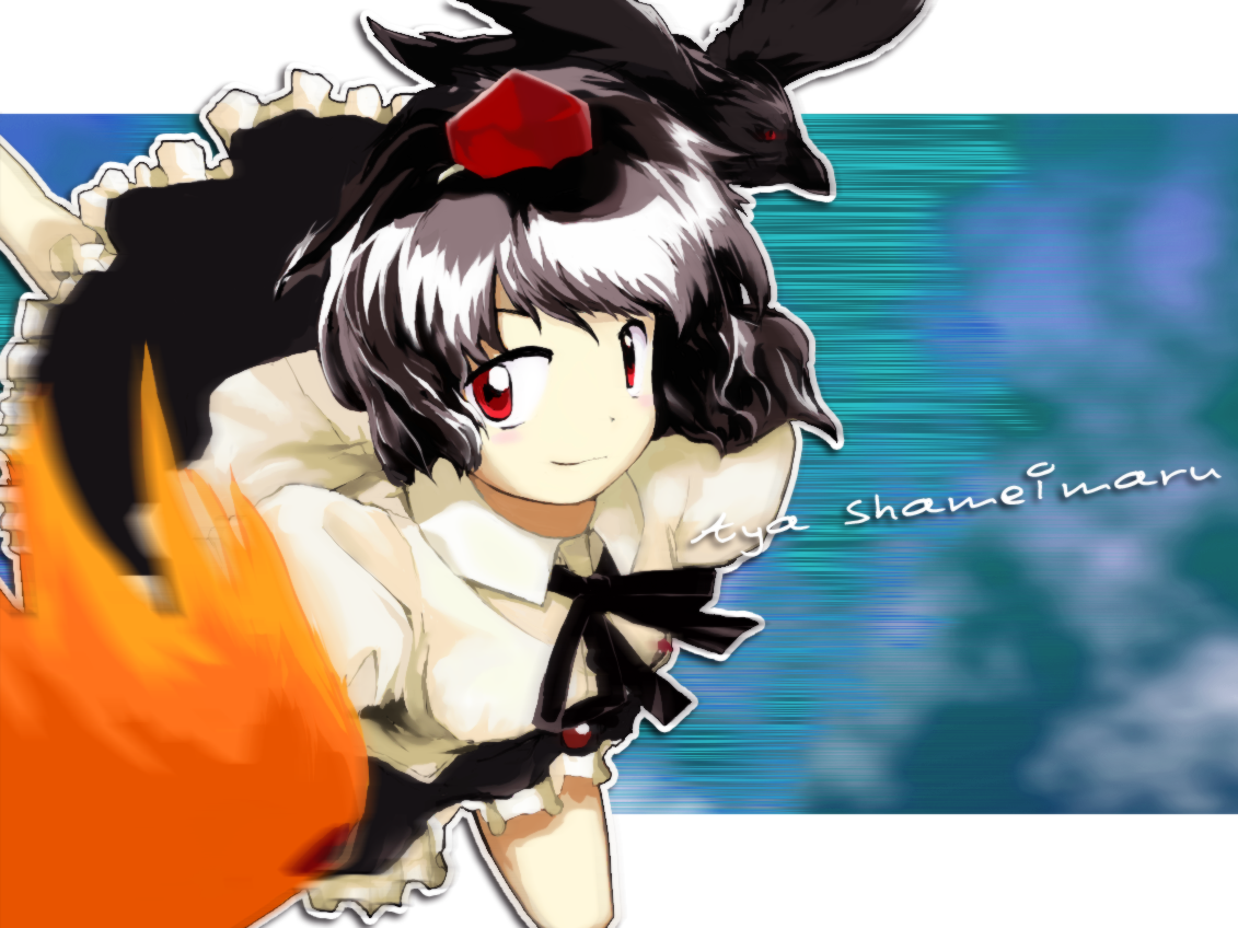 1girlbirdblack haircharacter namefemale focushatlooking at viewerofficial styleparodyred eyesshort hairsmilesolostyle parodytokin hatzun (style)