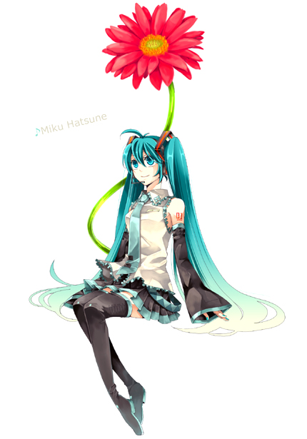 aqua eyesaqua hairdetached sleevesflowerheadsetlong hairnecktiesittingskirtthighhighstwintailsvery long hairzettai ryouiki