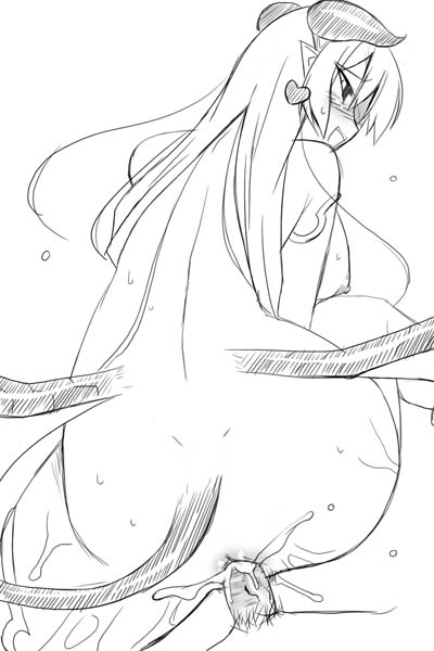 1girlanalassbackblack sclerablushbreastscolored scleracumdemon girldimples of venusearringsgreyscaleheartheart earringshornsjewelrylarge breastslooking backmonochromenudepenissexsolo focustailthighsuncensoredwings