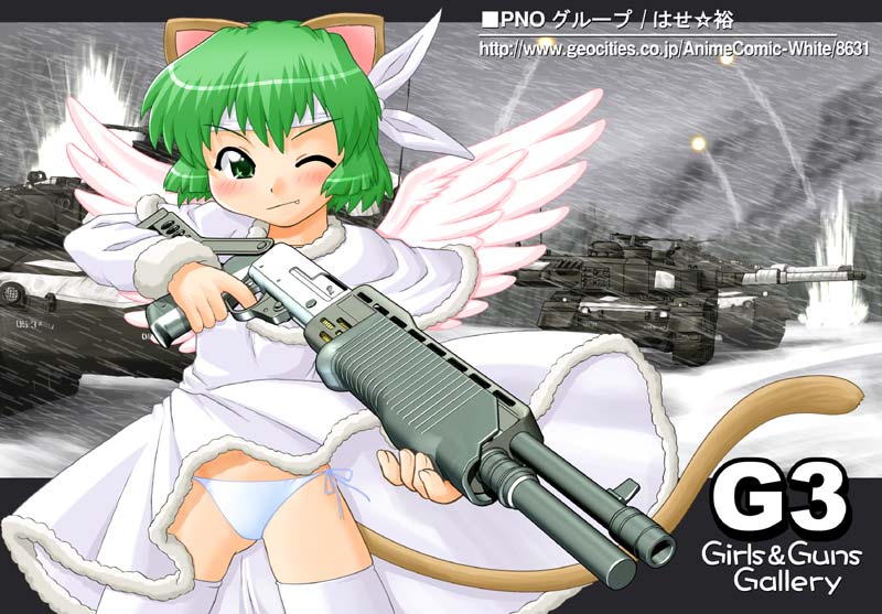 1girlanimal earsblushbrowning m2capecat earscat tailcaterpillar tracksclothes liftcombat shotgundressdress liftdual-mode shotgunfangfemale focusgreen eyesgreen hairgunheadbandheavy machine gunmachine gunmatching hair/eyesmilitarymilitary vehiclemotor vehicleone eye closedpantiespump actionpump-action shotgunsemi-automatic shotgunshort hairshotgunside-tie pantiesskirtskirt liftsolospas-12tailtankthighhighsunderwearupskirtweaponwhite pantieswingswink