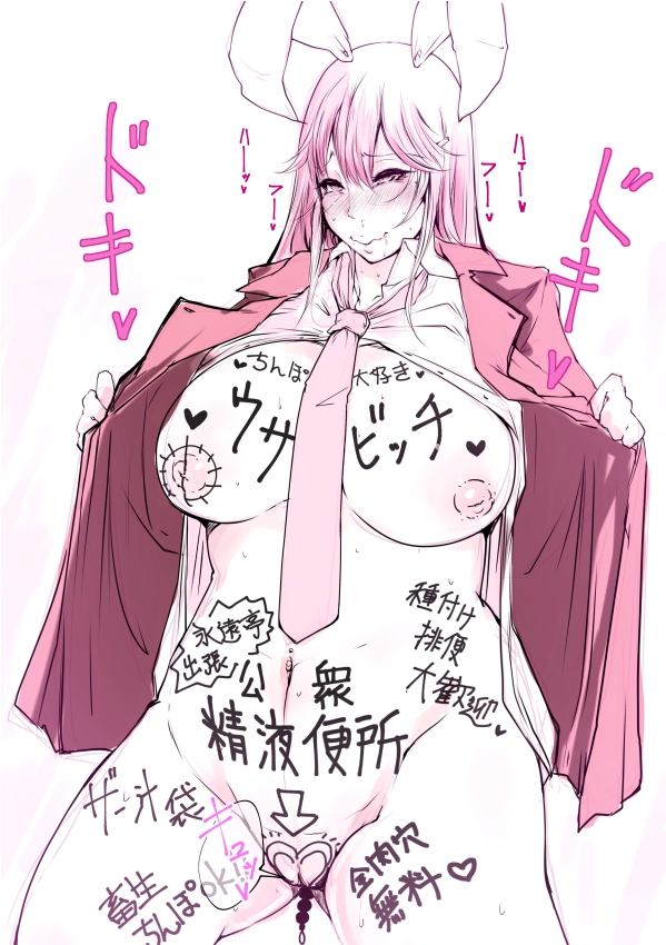 anal beadsanimal earsblushbody writingbottomlessbreastsbunny earsfemaleFlag for Deletionflashingfull-face blushhalf-closed eyeslarge breastslong hairnaughtynavelnecktieopen clothesopen jacketopen shirtplumppresentingpuffy nipplespussyrough