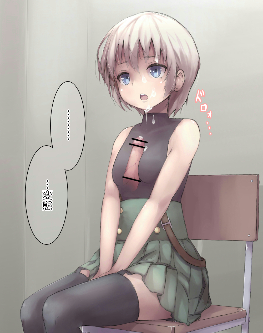 bare shouldersblack legwearblue eyeschaircumcum on clothescum on hairdisembodied penisfacialfemaleFlag for Deletiongarter strapsnaizuriopen mouthpaizuripaizuri over clothespenispleated skirtshort hairsittingskirtsuspendersthighhighs