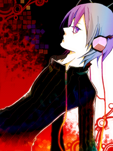 grimruu, hatsune miku, kasane teto, kasane teto (sv), synthesizer v, vocaloid, commentary, english commentary, highres, 2girls, aqua hair, aqua nails, drill hair, grey jacket, hair ribbon, hand on another's chin, headset, jacket, looking at another, multiple girls, nail polish, red eyes, red hair, red nails, ribbon, sparkle, sparkling aura, squishing, twin drills, white ribbon