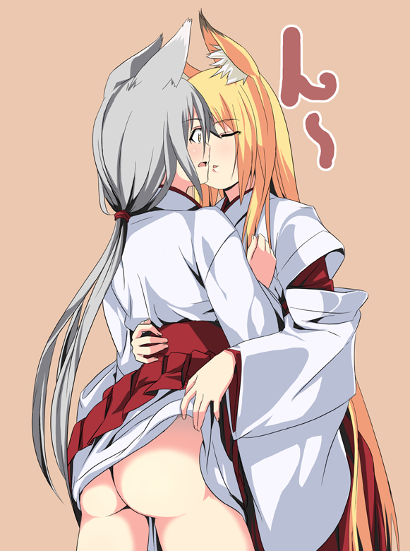 00s2girlsanimal earsassclothes liftfox earsjapanese clothesmikomultiple girlsskirtskirt liftyuri