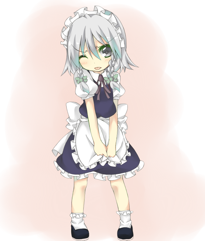 :p1girlaged downblushbraidfemale focusfrowngrey eyesmaidone eye closedsolotonguetongue outtwin braidswink