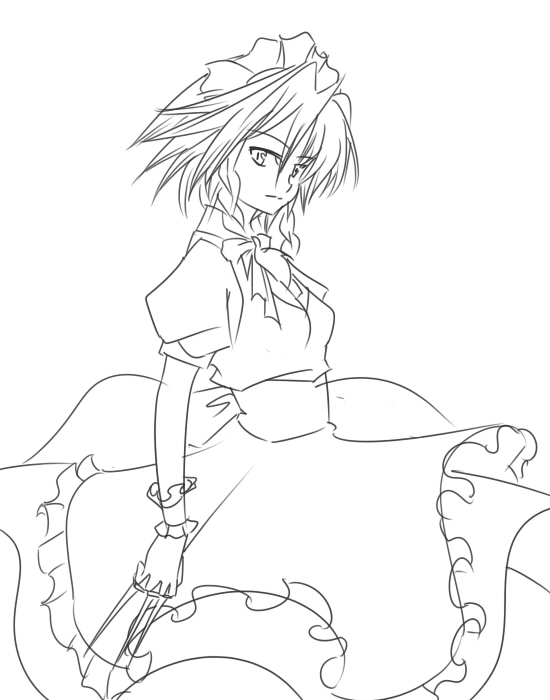 1girlbetween fingersbraidfemale focusgreyscaleholdingknifemaidmonochromeoutlinesolothrowing knifetwin braidsweapon