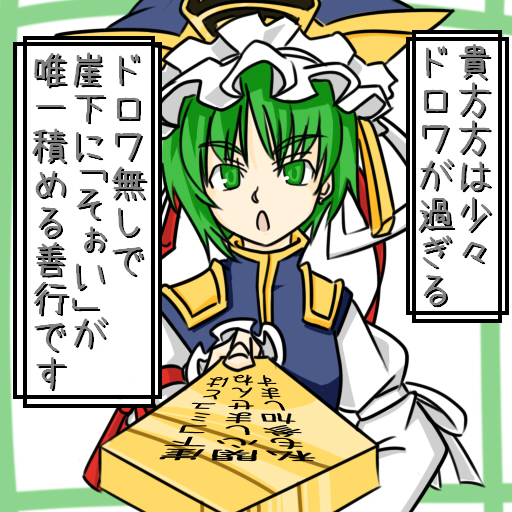 1girlfemale focusgreen eyesgreen hairhatmatching hair/eyesrod of remorseshort hairsolotext focus