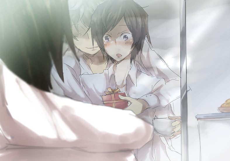 00s2boysbirthdayblack hairbrown hairclosed eyescupgiftholdingholding giftindoorsmale focusmultiple boyspurple eyesreflectionteateacupupper body