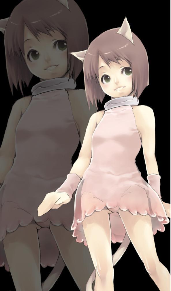 animal earsbare shouldersbrown haircat earscat taildressgreen eyessee-through clothesshort hairsmilesolotailzoom layer