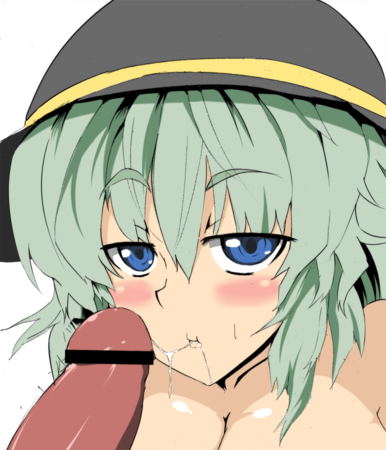 alternate breast sizeblue hairblushbreastscumcum in mouthcum stringfemaleFlag for Deletiongreen hairhairhathat ribbonheadgearlarge breastslooking at viewernudeoralpenisribbonshort hairsolosweatupper body